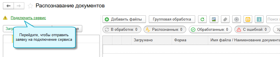 Распознавание документов через сервис 1С:РПД предоставляется по подписке за дополнительную плату. Подробнее о сервисе см. здесь.