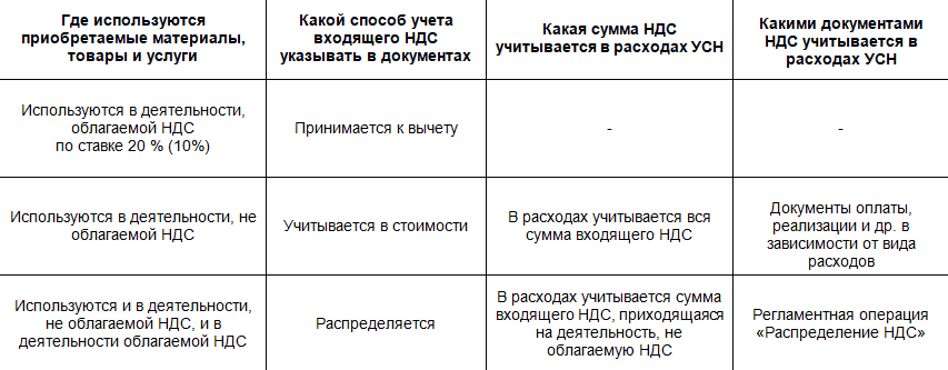 Поддержан учет расходов для плательщиков УСН "доходы минус расходы", которые используют общую ставку НДС 20% (10%), но при этом у них еще есть операции, не облагаемые НДС, и поэтому они ведут раздельный учет входящего НДС по способам учета.