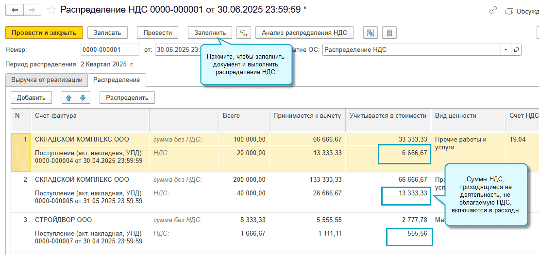 Чтобы учесть НДС в расходах начиная с 01.01.2025, потребуется перепровести все документы, включая регламентную операцию "Распределение НДС".