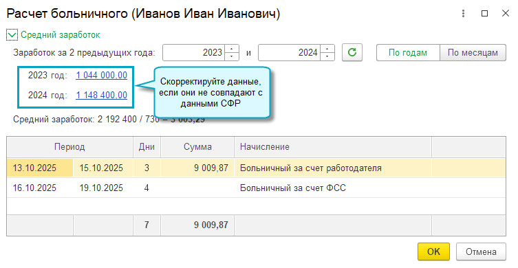 Поддержано получение из СФР данных для расчета пособия (Сообщение ЭДО типа 322). СФР направляет их после закрытия больничного листа сотрудника. Используйте данные СФР для расчета больничных за первые 3 дня, оплачиваемые организацией.