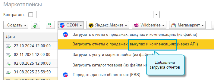 Добавлена возможность загружать через API отчеты OZON о выкупах и компенсациях.