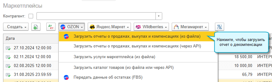 Добавлена возможность загружать отчеты OZON о декомпенсации и Wildberries о возврате компенсации из файлов или через API.