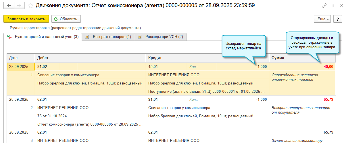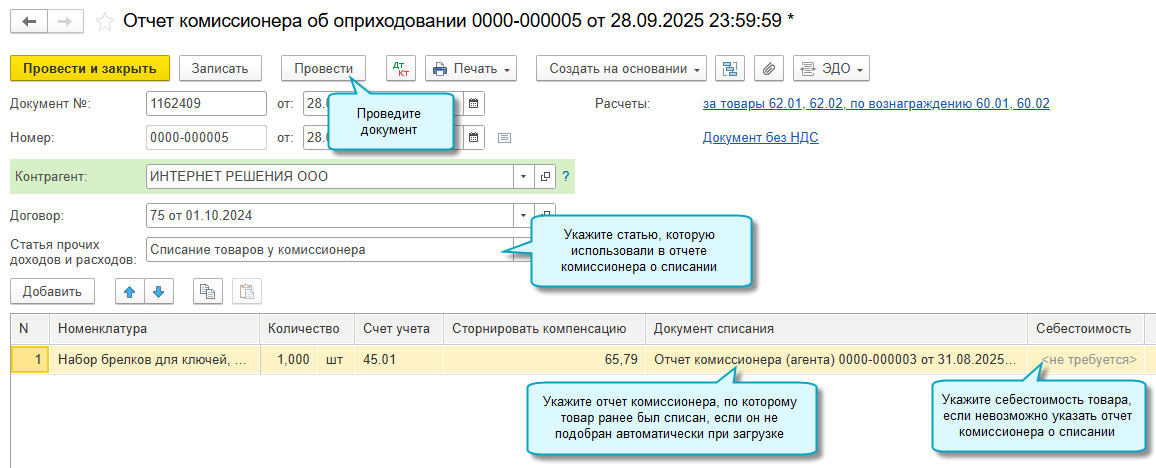 При загрузке создается документ Отчет комиссионера с новым видом операции Оприходование товаров - Отчет комиссионера об оприходовании.