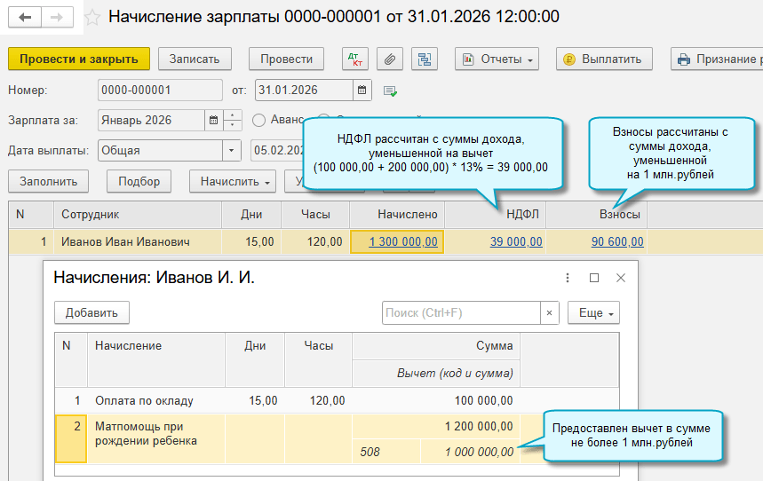 С 01.01.2026 при выплате материальной помощи при рождении ребенка не облагается НДФЛ и страховыми взносами сумма в пределах 1 млн. рублей (Федеральный закон от 23.07.2025 № 227-ФЗ).
