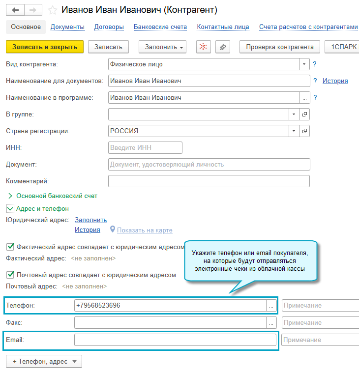 Проверьте, указан ли номер телефона или email в карточке покупателя.