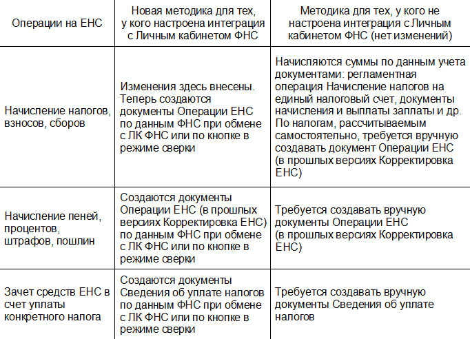В результате теперь используются две методики отражения в учете операций на ЕНС.