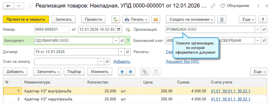 Во всех документах потребуется вводить организацию.