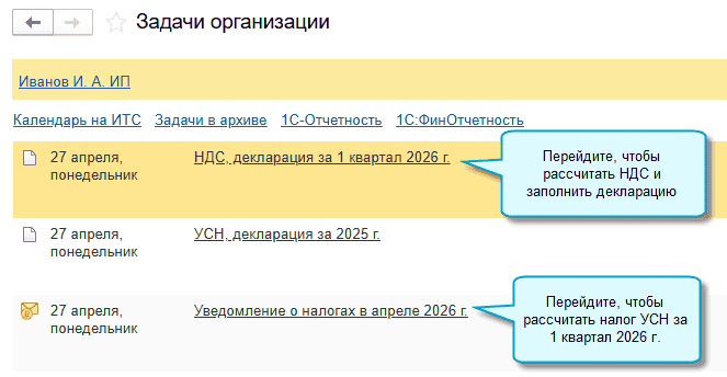 Достаточно выполнить настройки и автоматически будут загружаться отчеты маркетплейсов, создаваться документы по ним, в том числе УПД при продаже юридическим лицам или ИП. Потребуется только по окончании квартала выполнять задачи по автоматическому расчету НДС и УСН и подготовке деклараций и уведомлений об исчисленных суммах налогов.