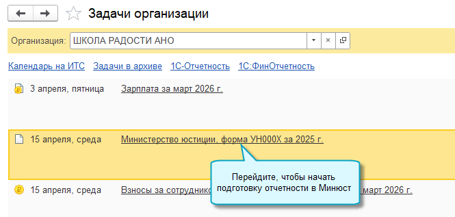 В помощник теперь можно перейти из задачи организации. Срок сдачи отчетности за 2025 год - не позднее 15 апреля 2026 г.
