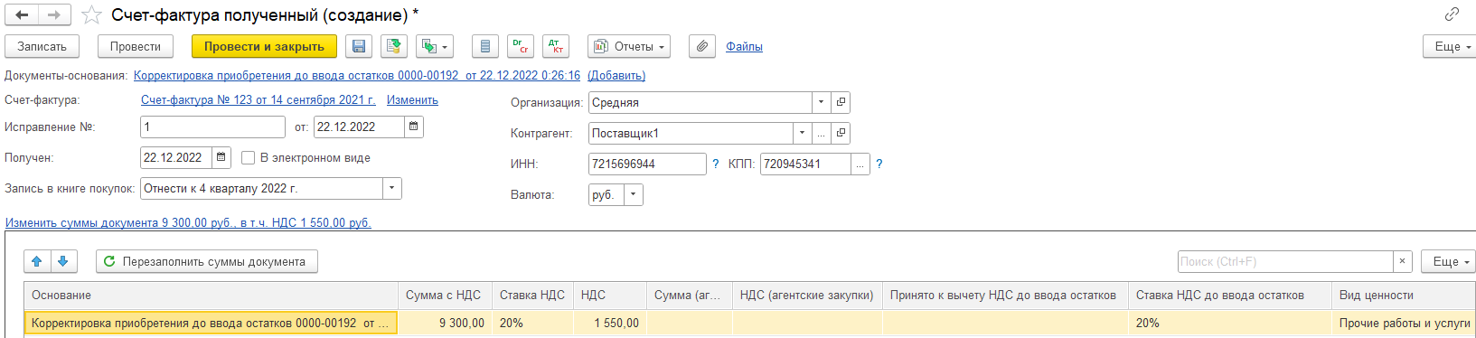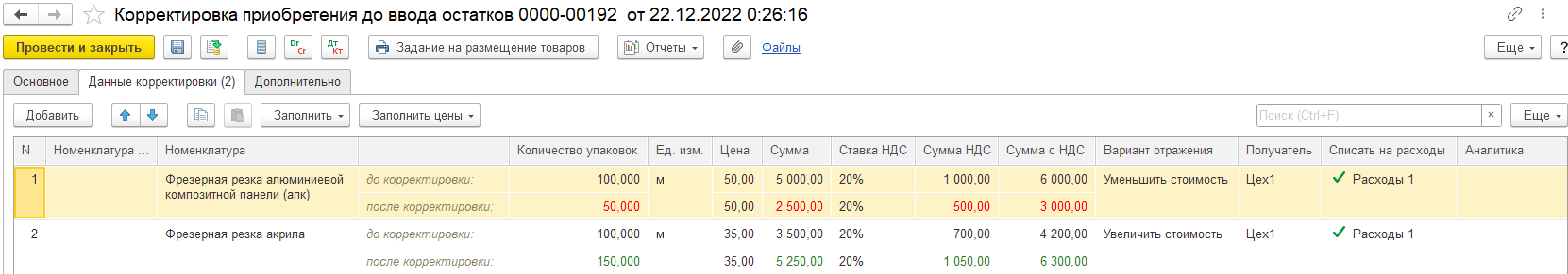 Например, в корректировке приобретения первая строка должна быть отражена в книге продаж, поскольку уменьшается количество купленных товаров, а вторая строка – в книге покупок, поскольку увеличивается количество купленных товаров.