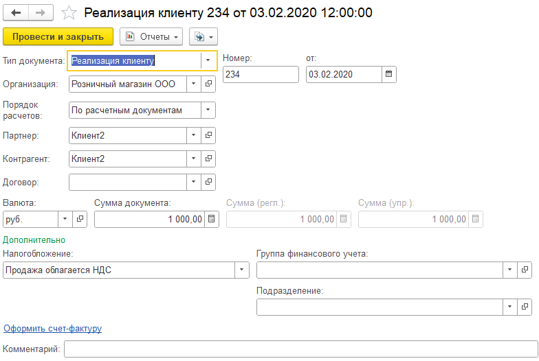 На закладке Основное в документе оплаты необходимо выбирать операцию Поступление оплаты от клиента. Также необходимо указать плательщика – это может быть предопределенный элемент Розничный покупатель (обезличенный) или контрагент с видом Физическое лицо (персонализированный розничный покупатель), Индивидуальный предприниматель или Юридическое лицо.