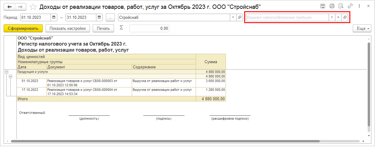 Для организаций, ведущих раздельный учет по налогу на прибыль, поддержана возможность формирования регистров налогового учета с детализацией по вариантам налогообложения.