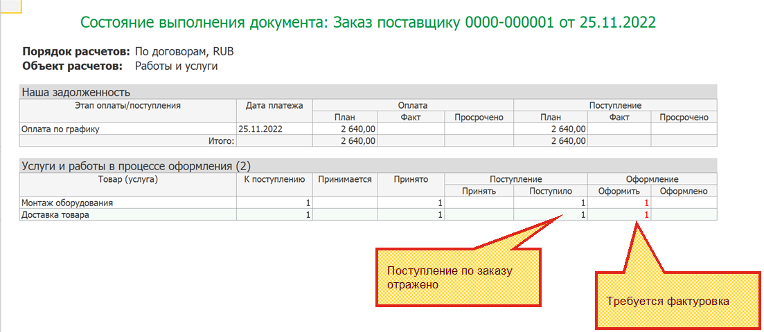 Сценарий оформления неотфактурованной поставки услуги (работы) с использованием заказа поставщику:
