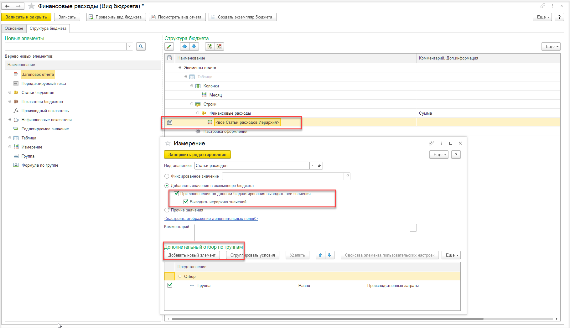 соответствующую строку в дереве в левой части формы.