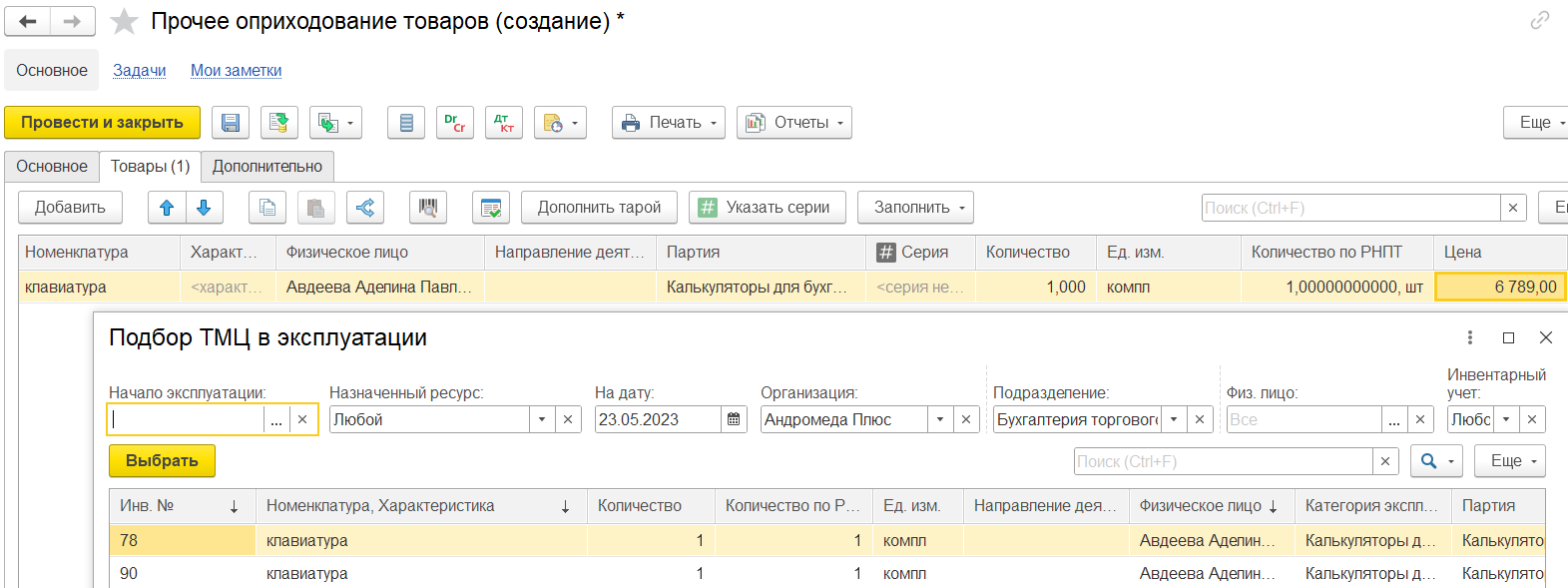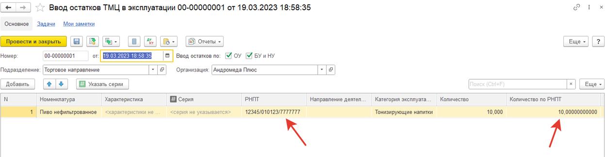 В сценарии недопоставки документ Списание расхождений между поступлением и приобретением также закрывает расхождения в «Товарах организаций» по собственным товарам по номерам ГТД и по Количеству по РНПТ.