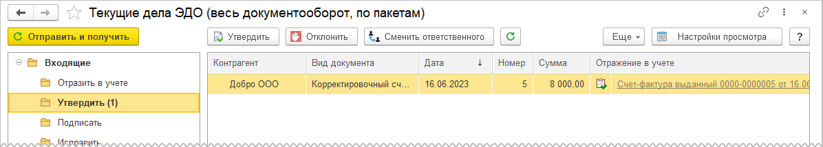 После утверждения корректировочного счета-фактуры электронный документооборот на стороне организации–покупателя считается завершенным.