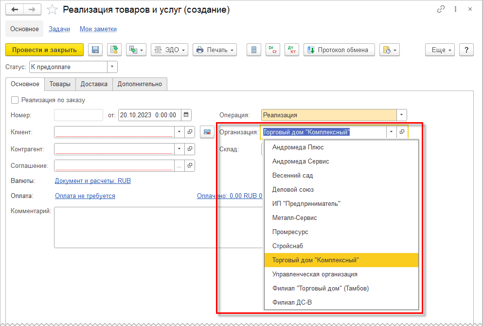 Организации со статусом Не действует скрывается из списка быстрого выбора.