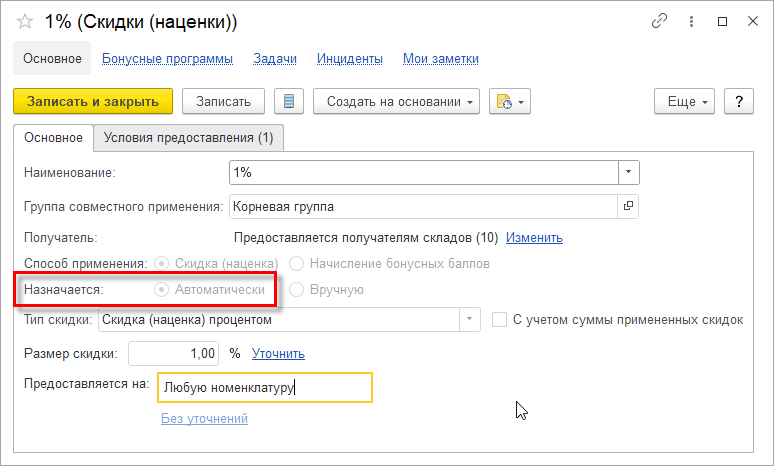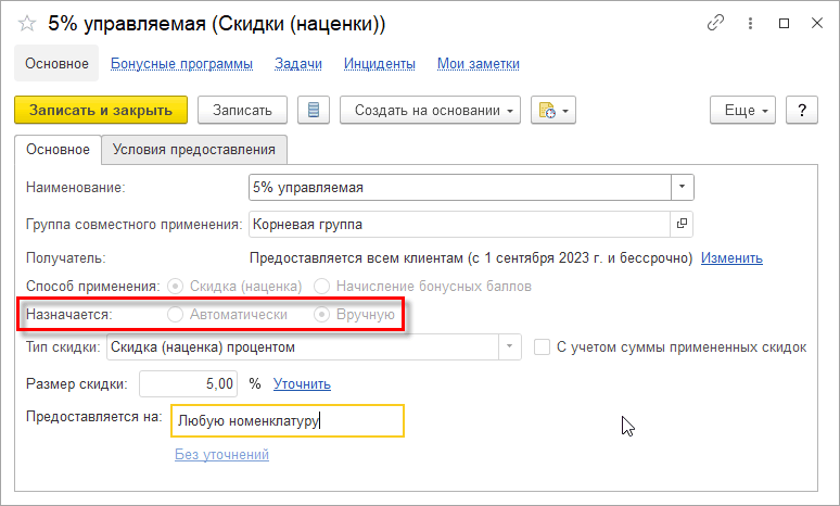 Во внешнем РМК могут применяться скидки, настроенные в управляющей системе, в том числе: