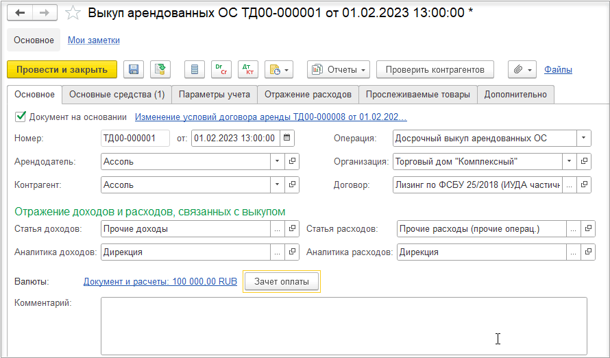 Для того чтобы установить новую дату окончания договора аренды (лизинга), необходимо перейти по гиперссылке Срок аренды и установить новый срок окончания аренды.