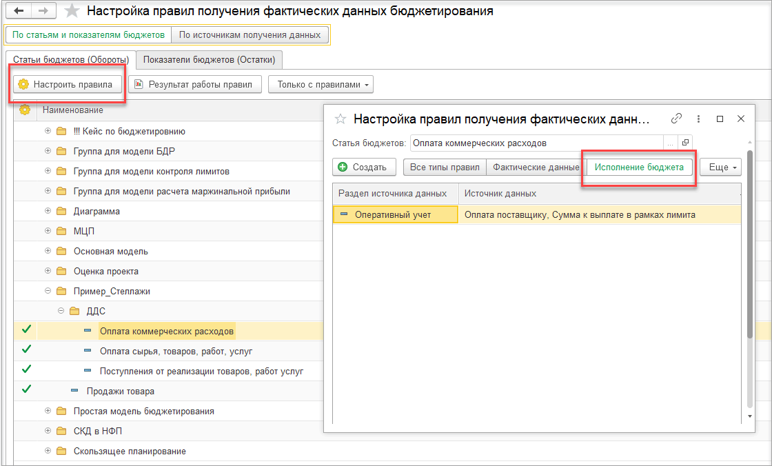 Также перед изменением настройки по получению фактических данных по статьям бюджета необходимо включить хранение факта по всем правилам по данным оперативного учета.