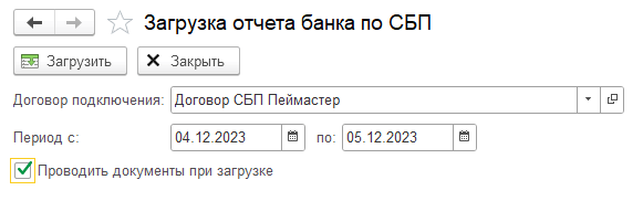 Если оплата от покупателей зачисляется общей суммой за период за минусом комиссии и банк не предоставляет данные сверки СБП, то следует выбрать настройку в договоре При зачислении на банковский счет.