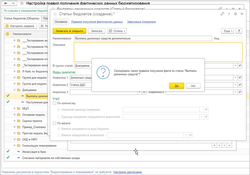 При копировании статьи бюджета или показателя бюджета добавлена возможность копировать связанные правила получения фактических данных.