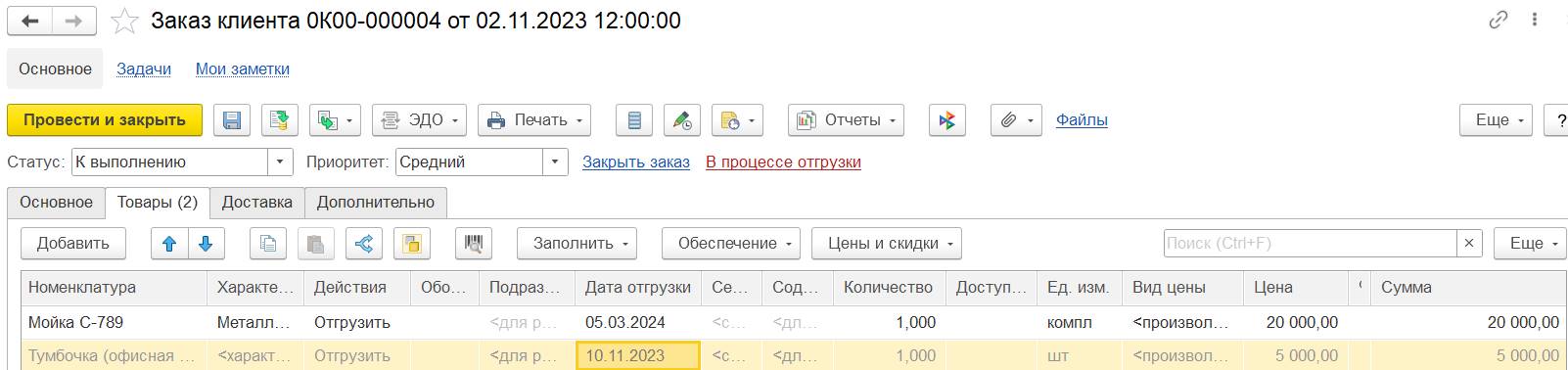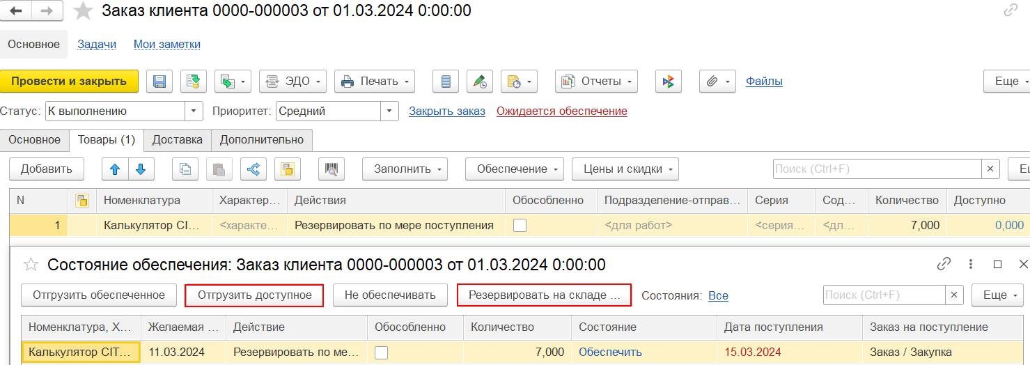 Для упрощения работы в задаче корректировки резерва, выполнения отгрузки вне плана, контроля обеспечения на стадии приема заказа от клиента/потребителя: