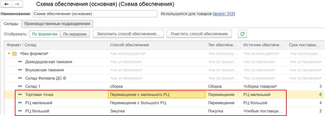В ранних версиях предусмотрен способ расчета потребностей для центра распределительных сетей с учетом потребностей всех подчиненных складов сети: