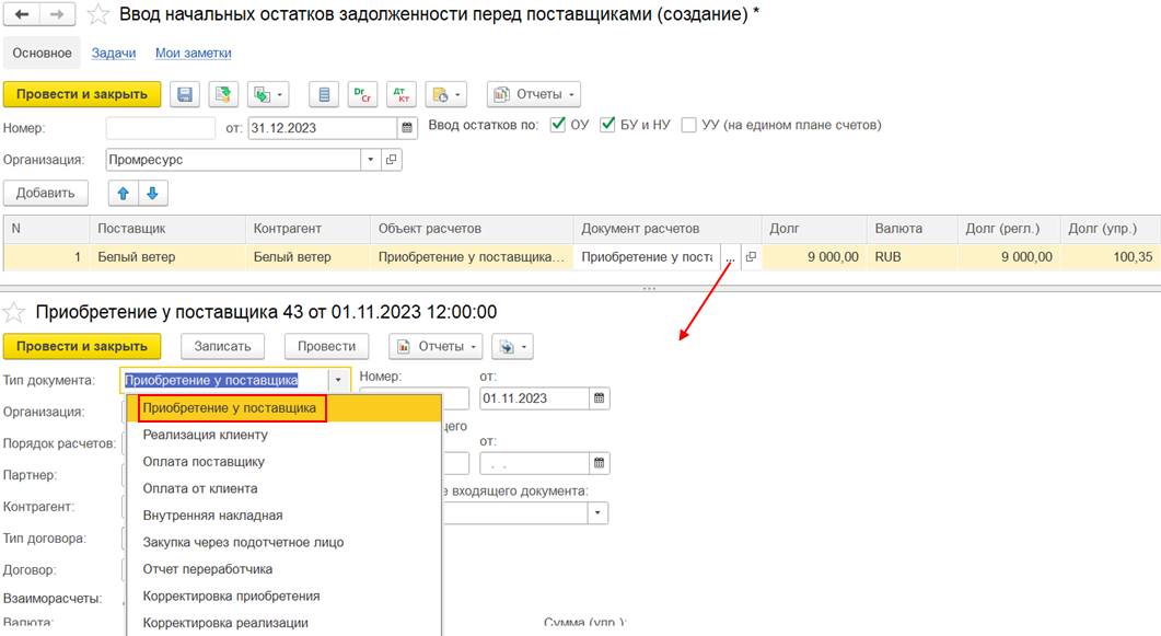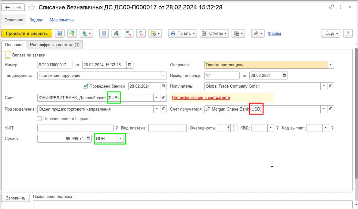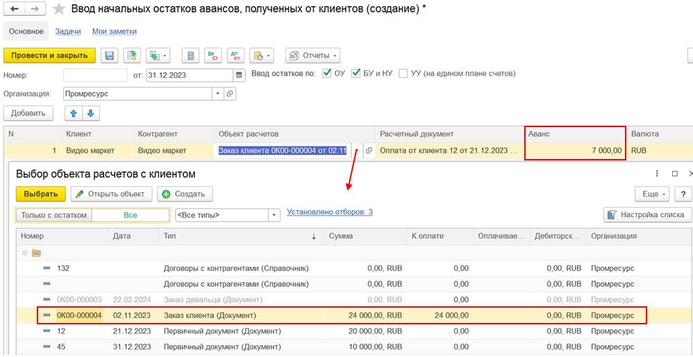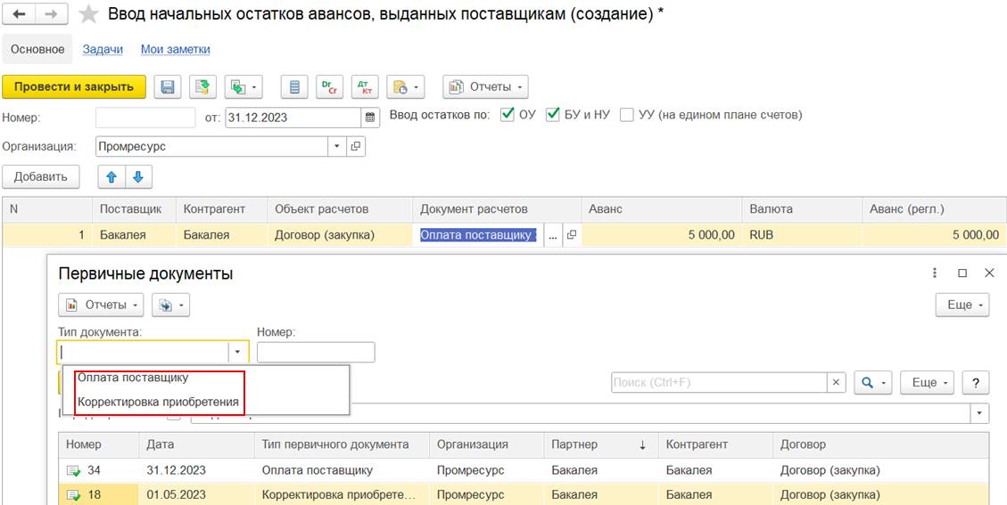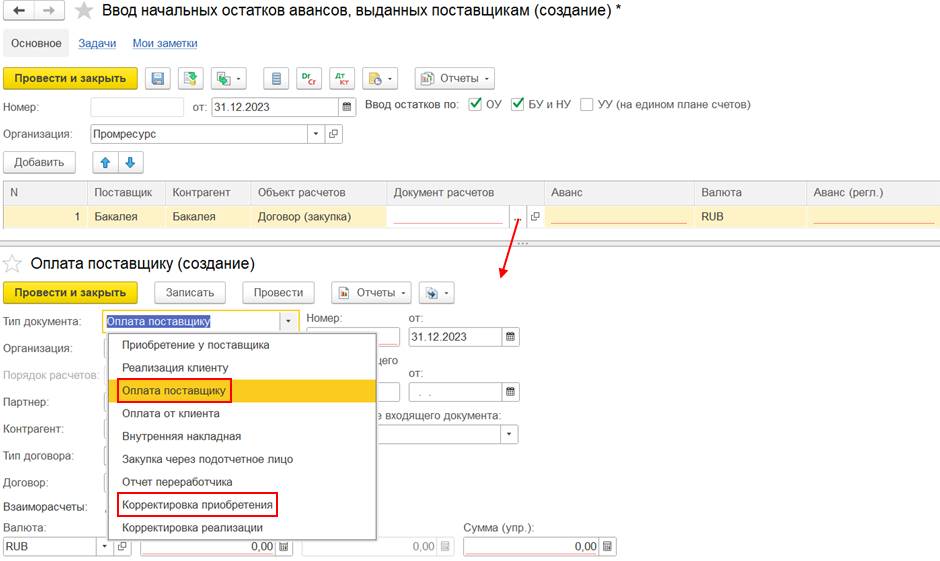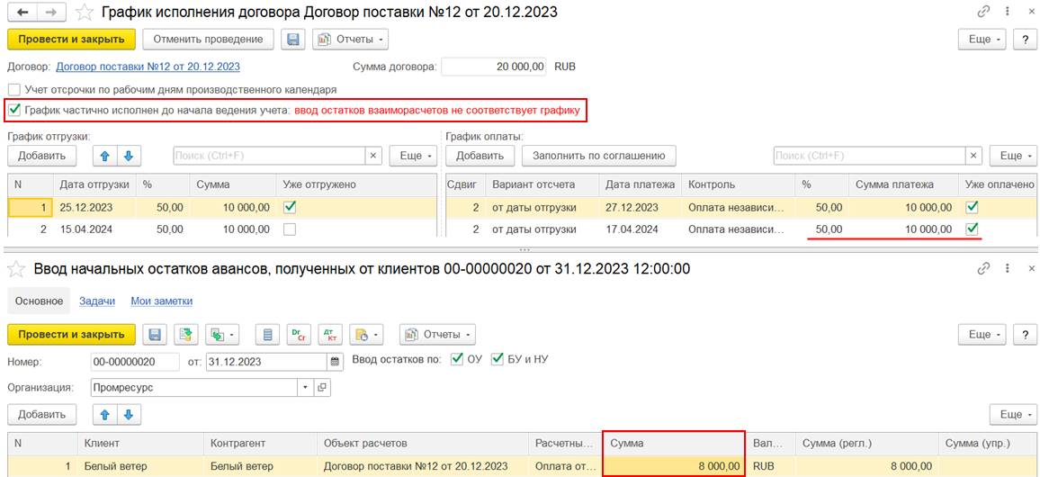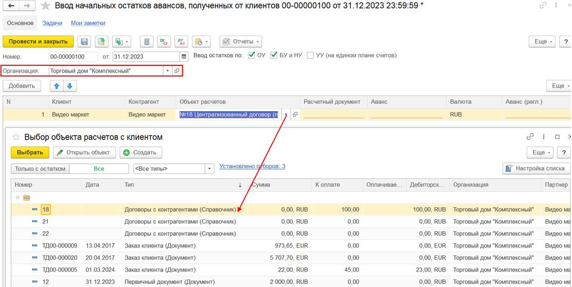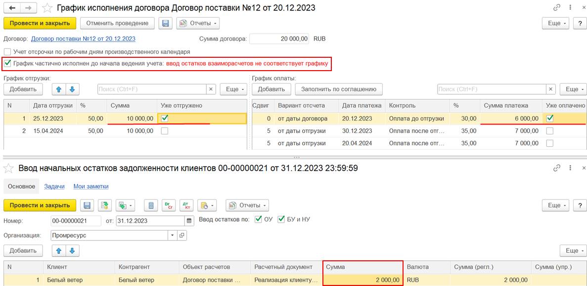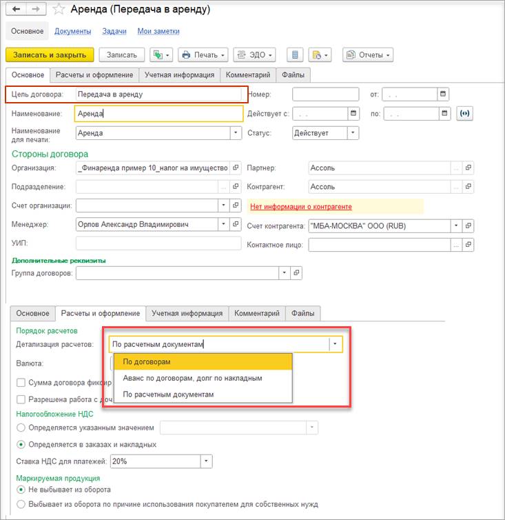 В случае использования нескольких договоров может потребоваться дополнительно отразить документ Взаимозачет задолженности (Зачет встречных обязательств).