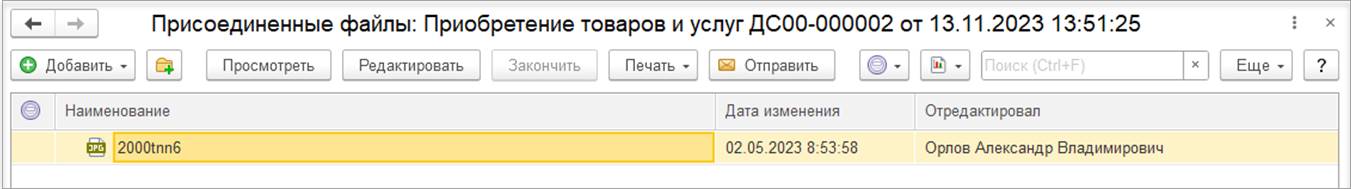 После выбора файла в списке выводится весь список присоединенных файлов документа. По кнопке Скрыть нерекомендуемые расширения можно оставить только рекомендуемые расширения (zip, pdf).
