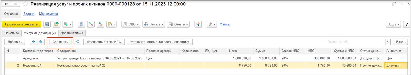 Торговая площадка выставляет УПД на сумму вознаграждения к отчету о реализации и отдельно на дополнительные услуги. Сумма вознаграждения указываться указывается автоматически при загрузке отчета комиссионера. В случае необходимости отразить вознаграждение отдельным документом Приобретение услуг и прочих активов, например, при загрузке УПД по ЭДО, менеджер должен самостоятельно в отчете комиссионера удалить сумму вознаграждения, ввести документ Приобретение услуг и прочих активов. Дополнительные услуги отражаются отдельными документами Приобретение услуг и прочих активов