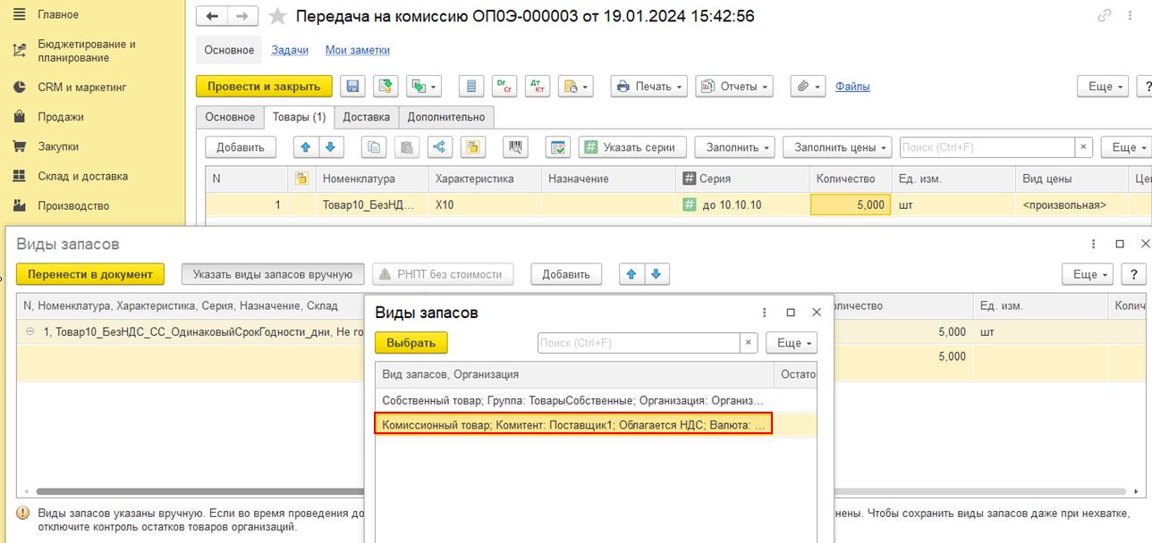 Предлагаемый вариант работы при установленной опции Контролировать запасы товаров, подлежащих резервированию по мере: