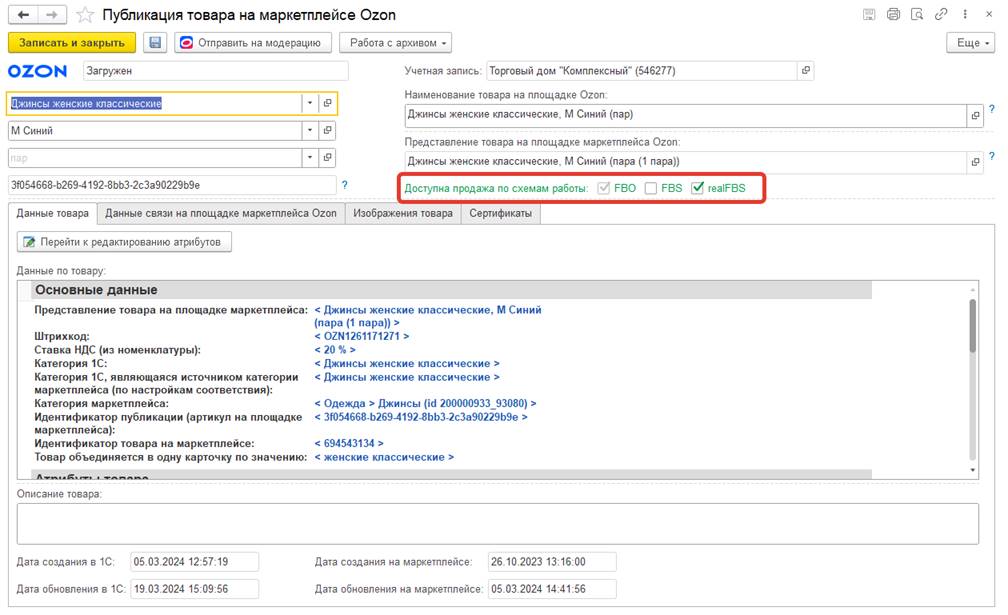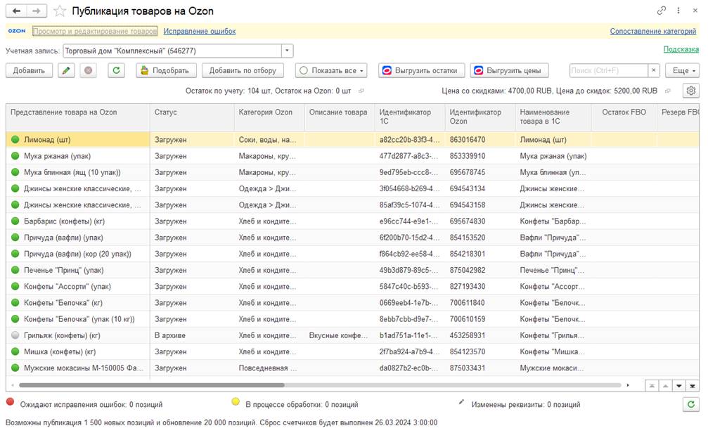 Полученный файл с поставками необходимо загрузить в учетную систему в рабочем месте Управления продажами Ozon по команде Загрузить поставки.