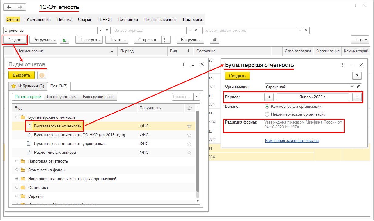 Правила заполнения настраиваемой отчетности по ФСБУ 4/2023 не поддерживаются старыми формами отчетности. Выбранная в учетной политике настройка правил заполнения бухгалтерской отчетности должна соответствовать версии форм заполняемой отчетности. Например, при формировании в сервисе 1С-Отчетность форм бухгалтерской отчетности за январь 2025г. в учетной политике бухгалтерского учета организации должна быть настройка с 01.01.2025г., в которой в поле Настройка заполнения бухгалтерской (финансовой) отчетности выбрана настройка, выполненная по ФСБУ 4/2023. При попытке заполнения старых форм по правилам ФСБУ 4/2023 и новых форм по старым правилам, заполнение отчетов не выполнится.