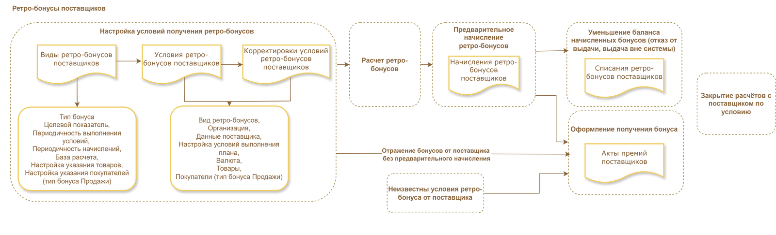 В данной схеме представлено два основных сценария работы с ретро-бонусами поставщика: