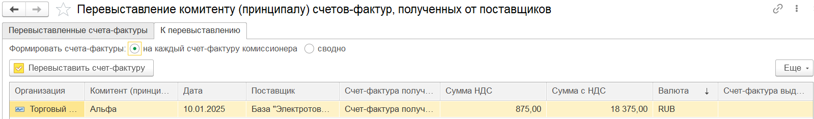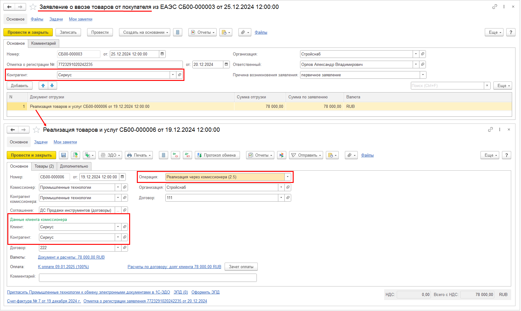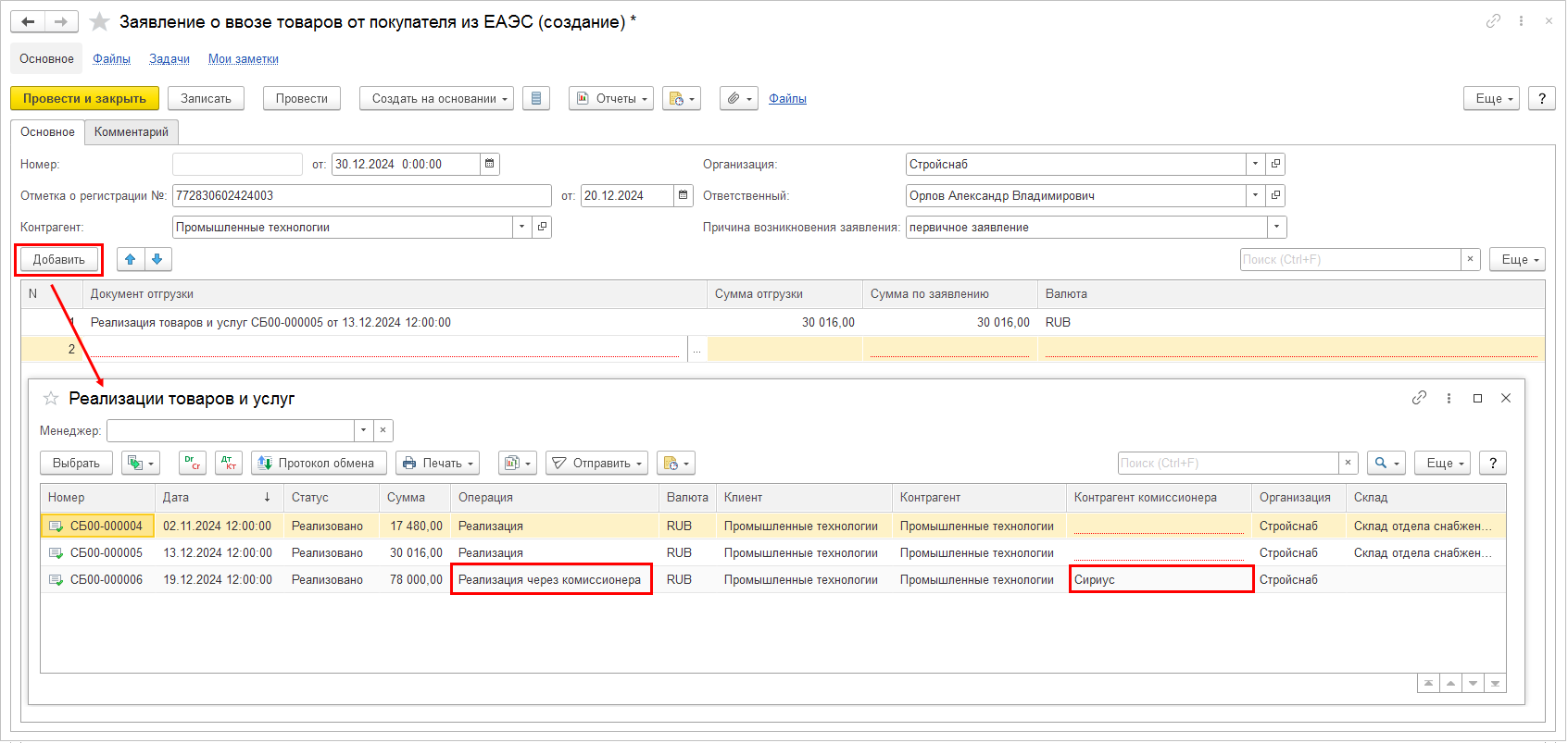 ■ Исходные документы учетной системы (оформленные заявки на поставку) – Передача на комиссию (версия 2.5).