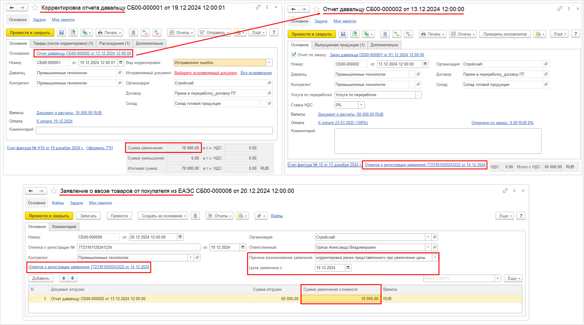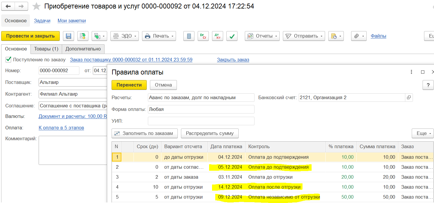 Также заказ может быть создан на основании документов: