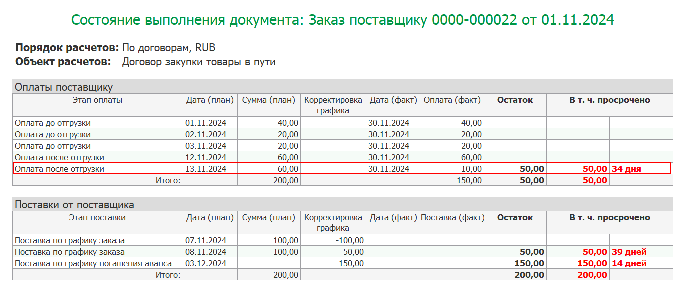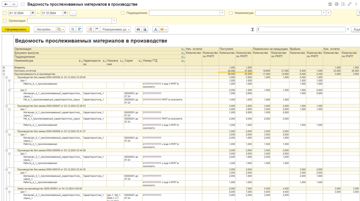В режиме В отчете выводится таблица с указанием расхождений.