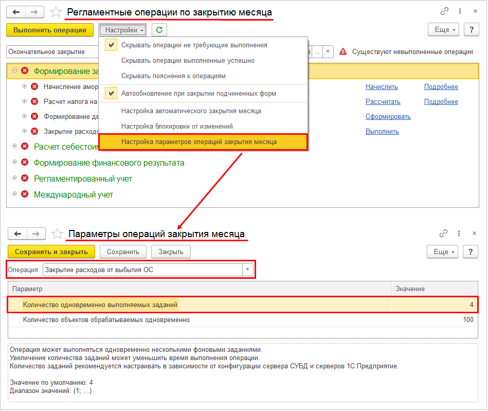 Доступные значения определяются установкой функциональных опций и настройками. В частности: