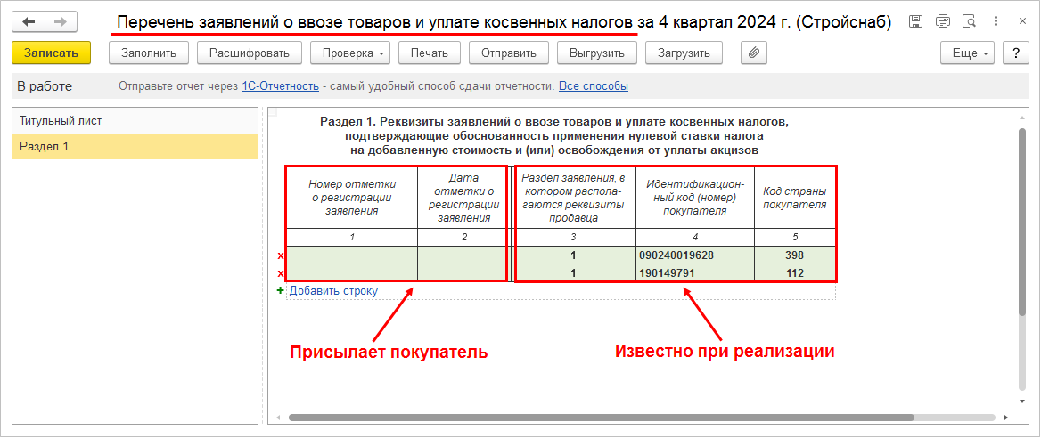 ■ Загрузить полученный файл в информационную базу и проверить на соответствие данным учетной системы