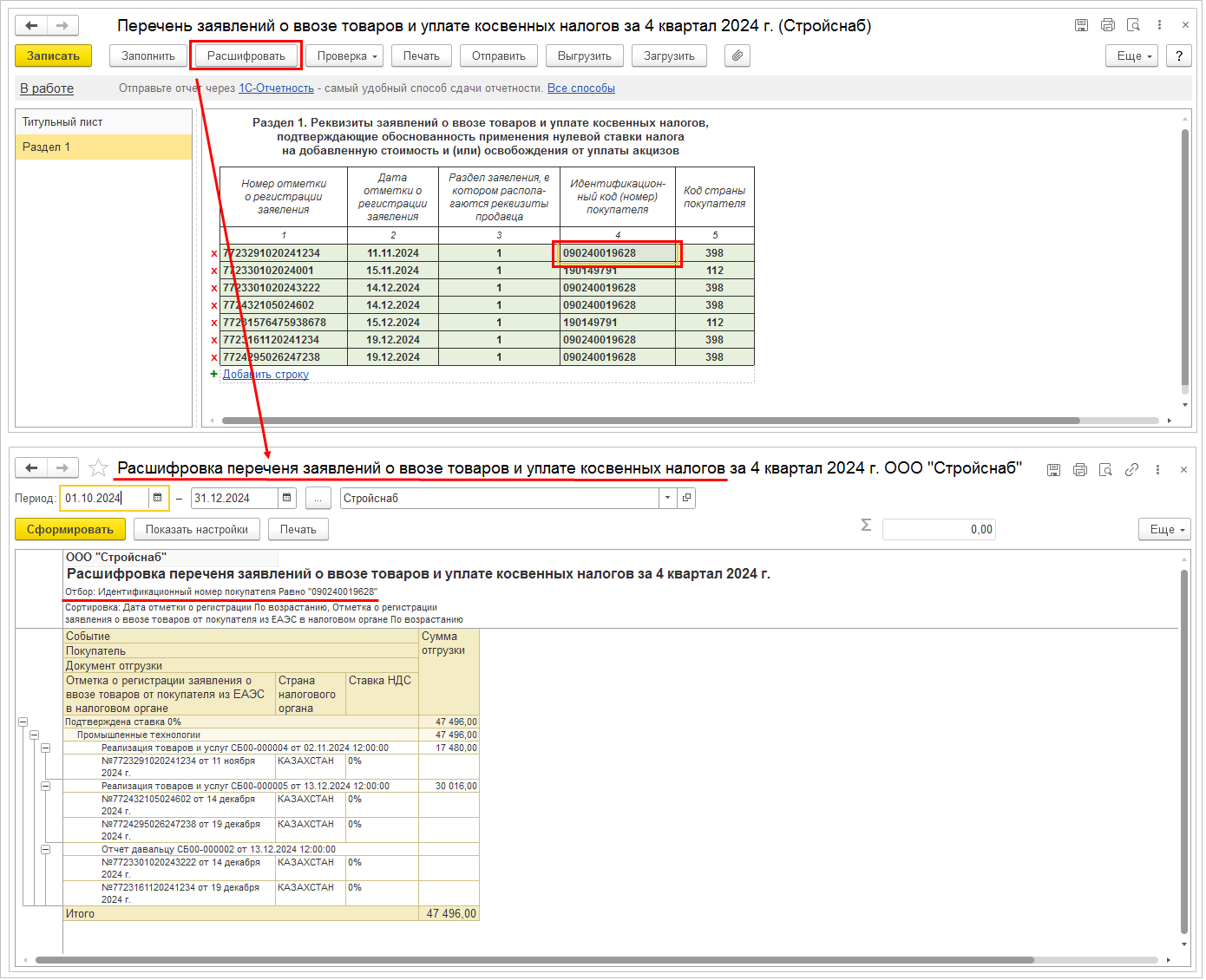 Симметричные данные по отправителю и получателю указываются в два столбца Отгрузка и Доставка.