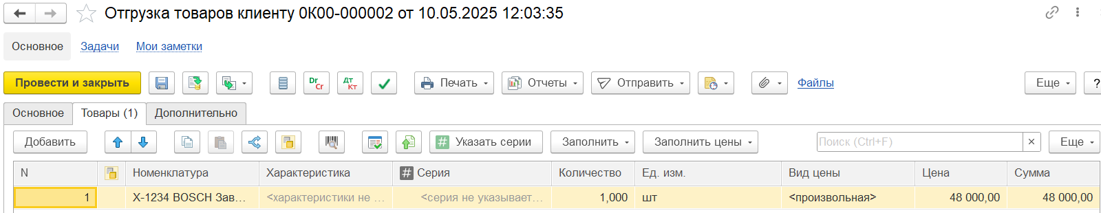 Особенности документа Отгрузка товаров клиенту: