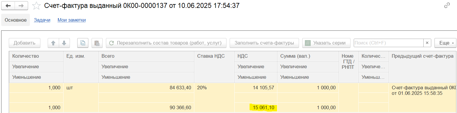 После распределения количества и суммы к отражению в счетах-фактурах:
