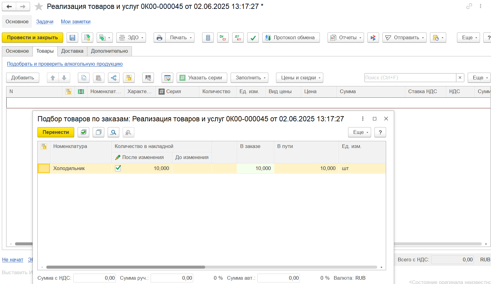 Заказ с операцией Реализация предусмотрен как при обычной отгрузке, так и при отгрузке с отложенным переходом права собственности.