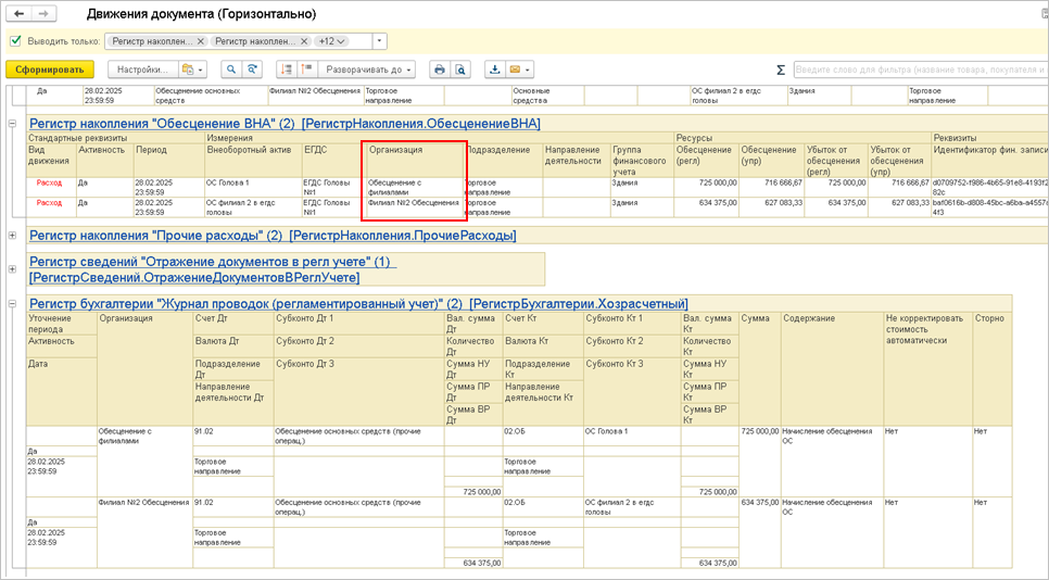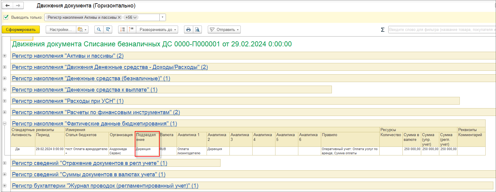 КСФ при проведении формирует движения по сумме НДС: