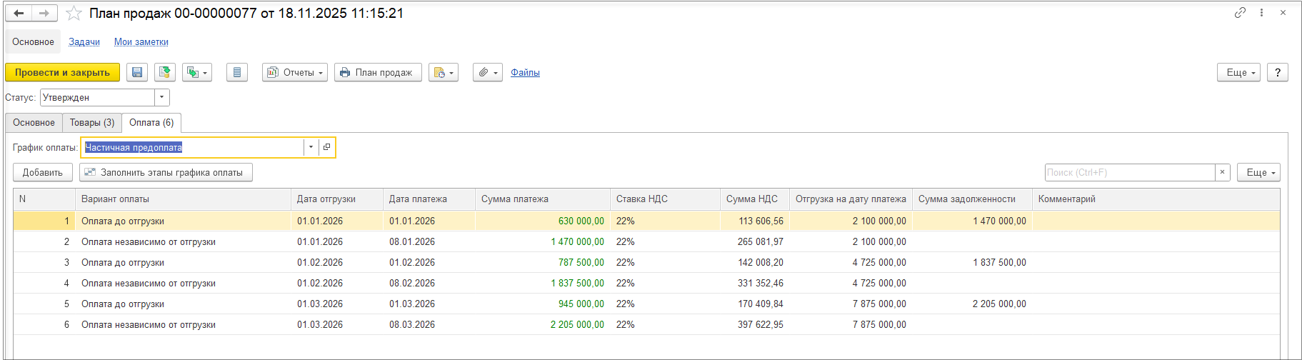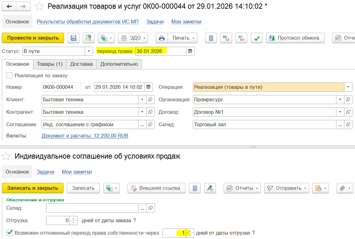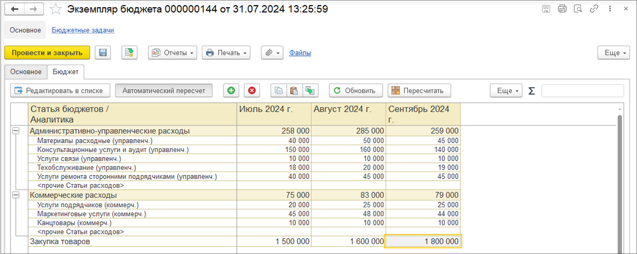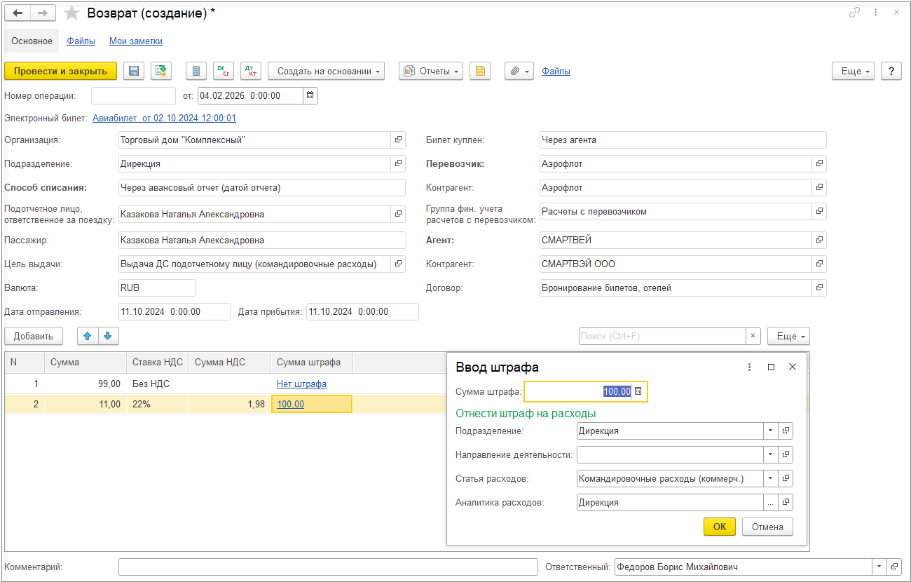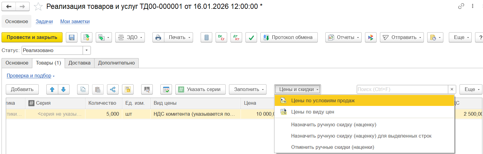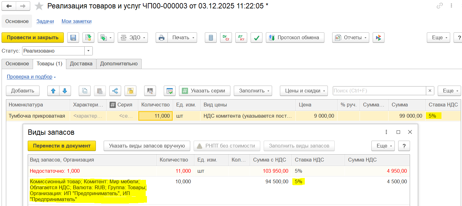 После заполнения товаров можно перенаправить документ для заполнения и уточнения цен.