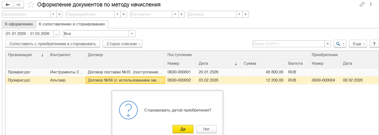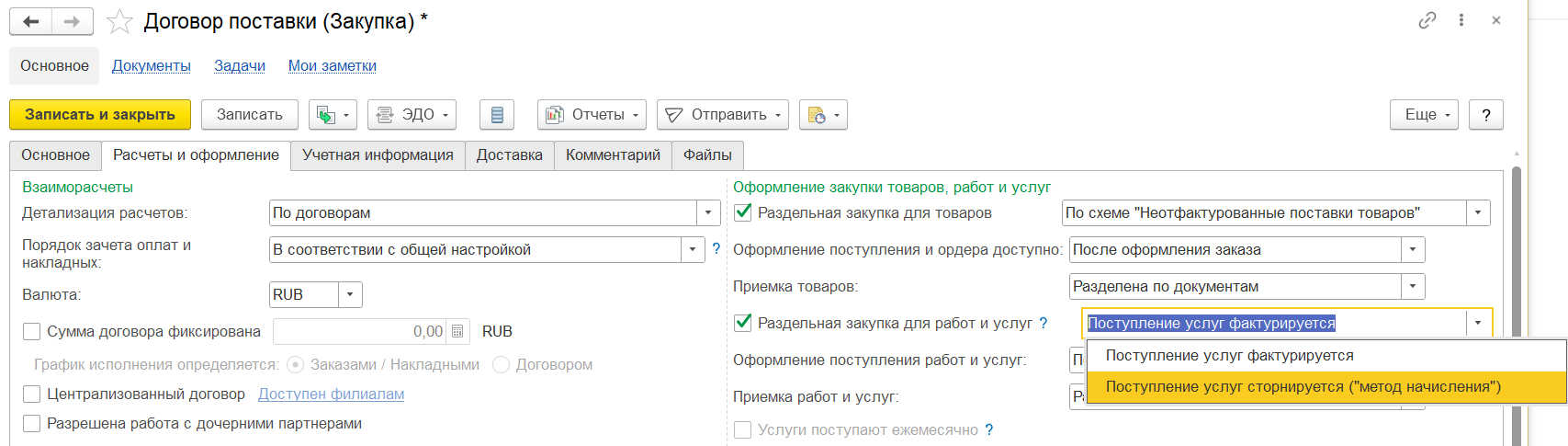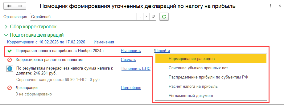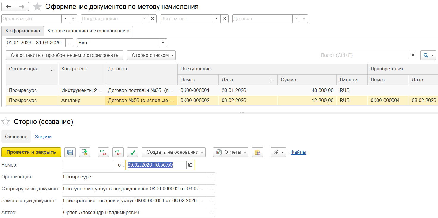 Если в текущем квартале вводится сторно приобретения товаров и услуг предыдущего квартала и в этом же месяце исправляется база распределения предыдущего квартала, то могут возникать восстановления НДС. В данном сценарии рекомендуется использовать поквартальное формирование вычетов и восстановлений НДС (настройка учетной политики организации Периодичность формирования вычетов и восстановлений НДС), чтобы минимизировать лишние вычеты и восстановления.