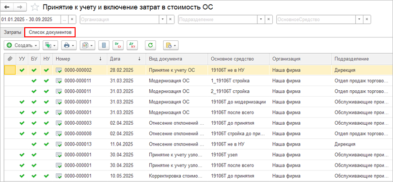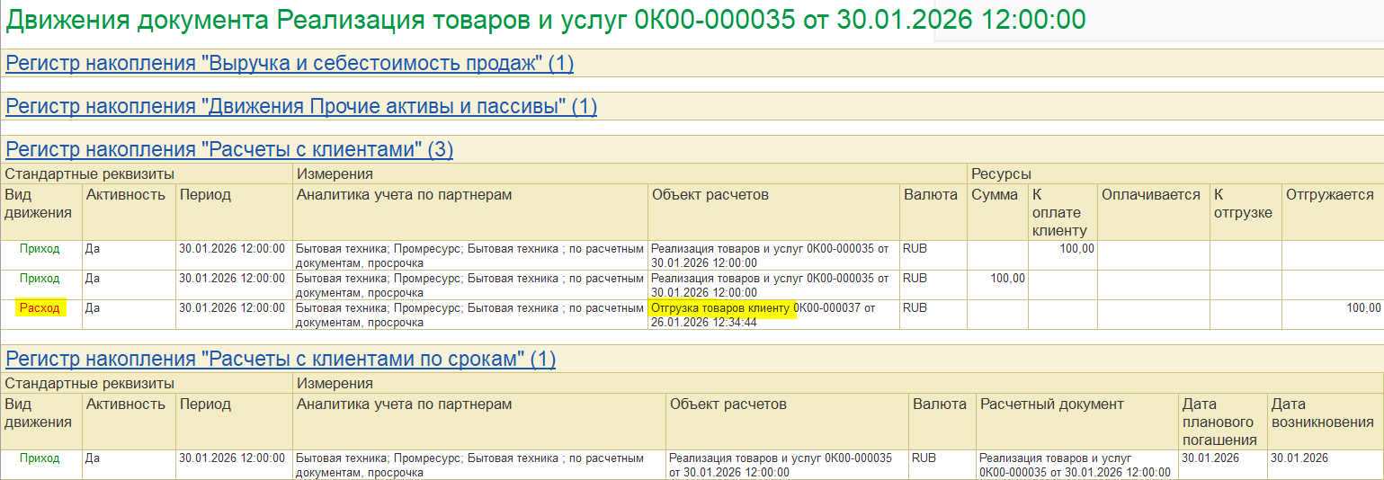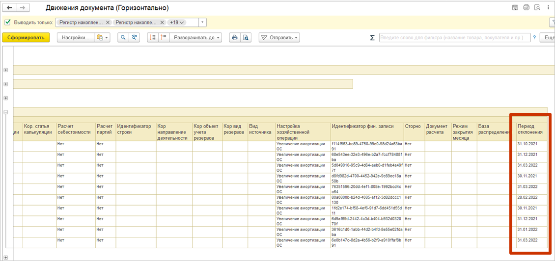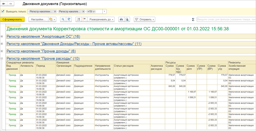 Сводные движения для документов Регистратор расчета себестоимости |
