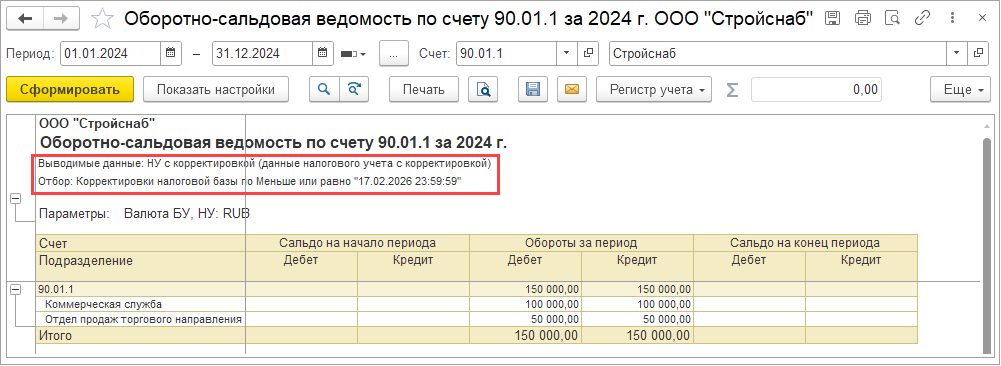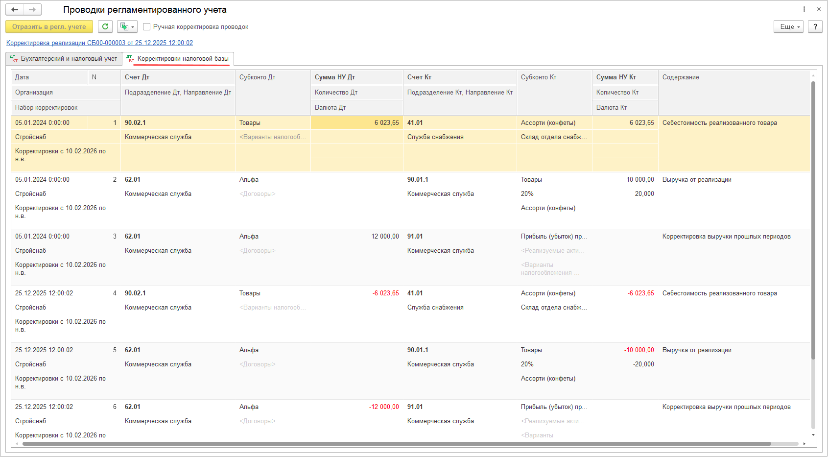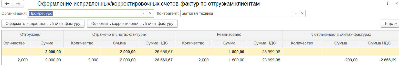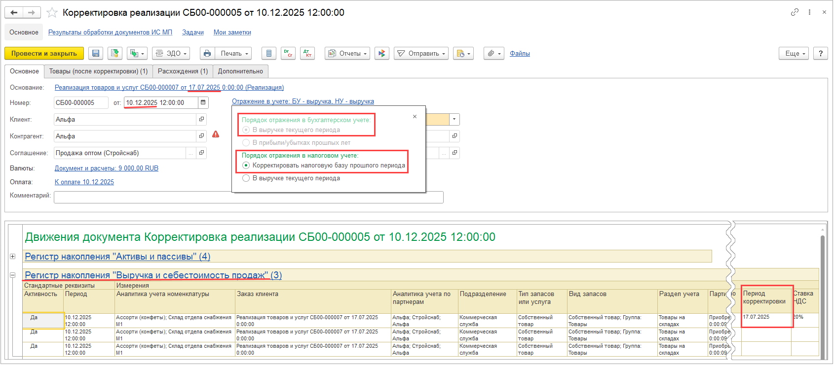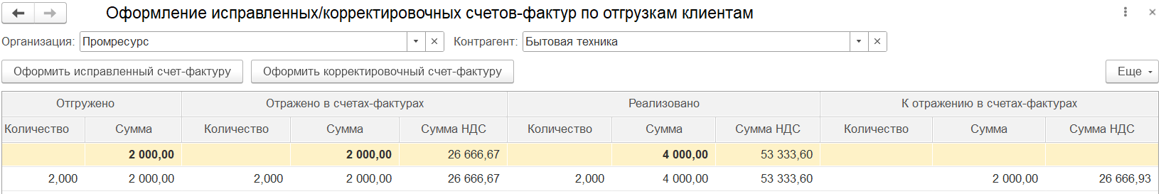 При изменении данных к распределению в результате оформления корректировки приобретения или исправления первичных документов прошлого периода изменение распределения НДС учитывается в периоде исправления (отражается в документе Распределение НДС за период, к которому относится исправление), но распределение выполняется по базе периода исправляемого документа.