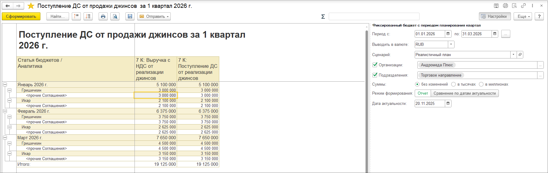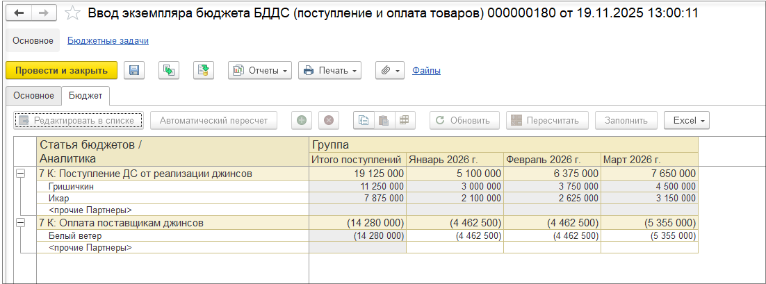 Формирование движений с детализацией партий |